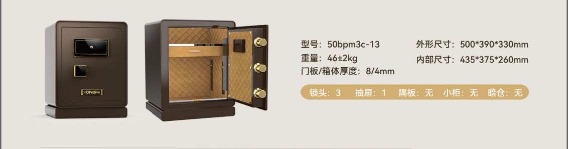 永發(fā)保險柜旗艦款(¥42,800):12mm潛艇錳鋼,防撬94分鐘
