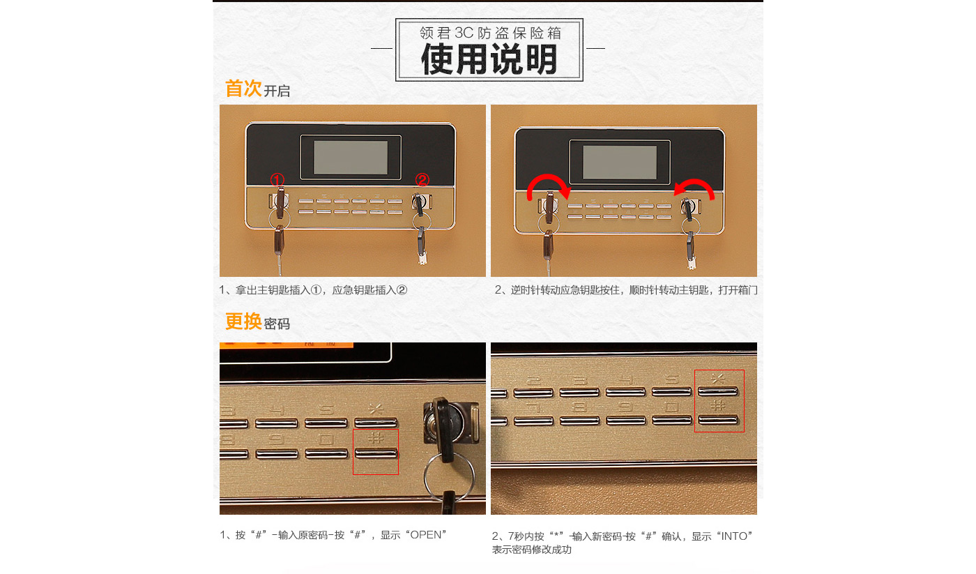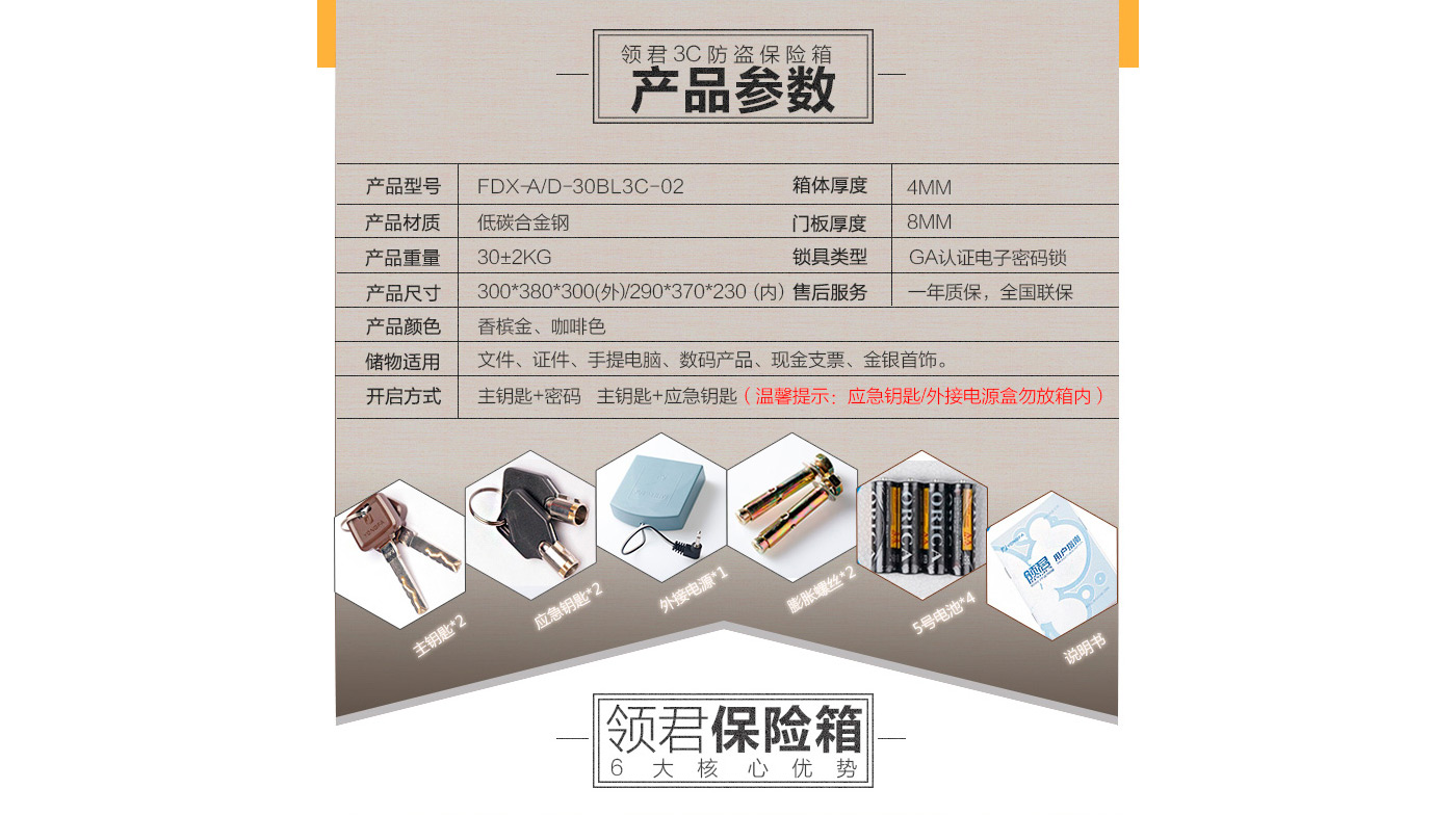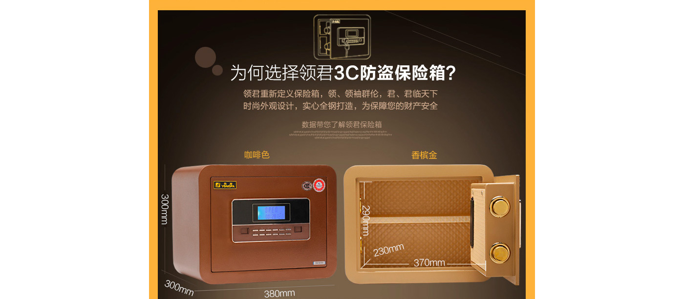 永發(fā)領(lǐng)君電子式保險(xiǎn)箱D-30BL3C-02尺寸說(shuō)明:300高*380寬*310深mm 重量:30kg