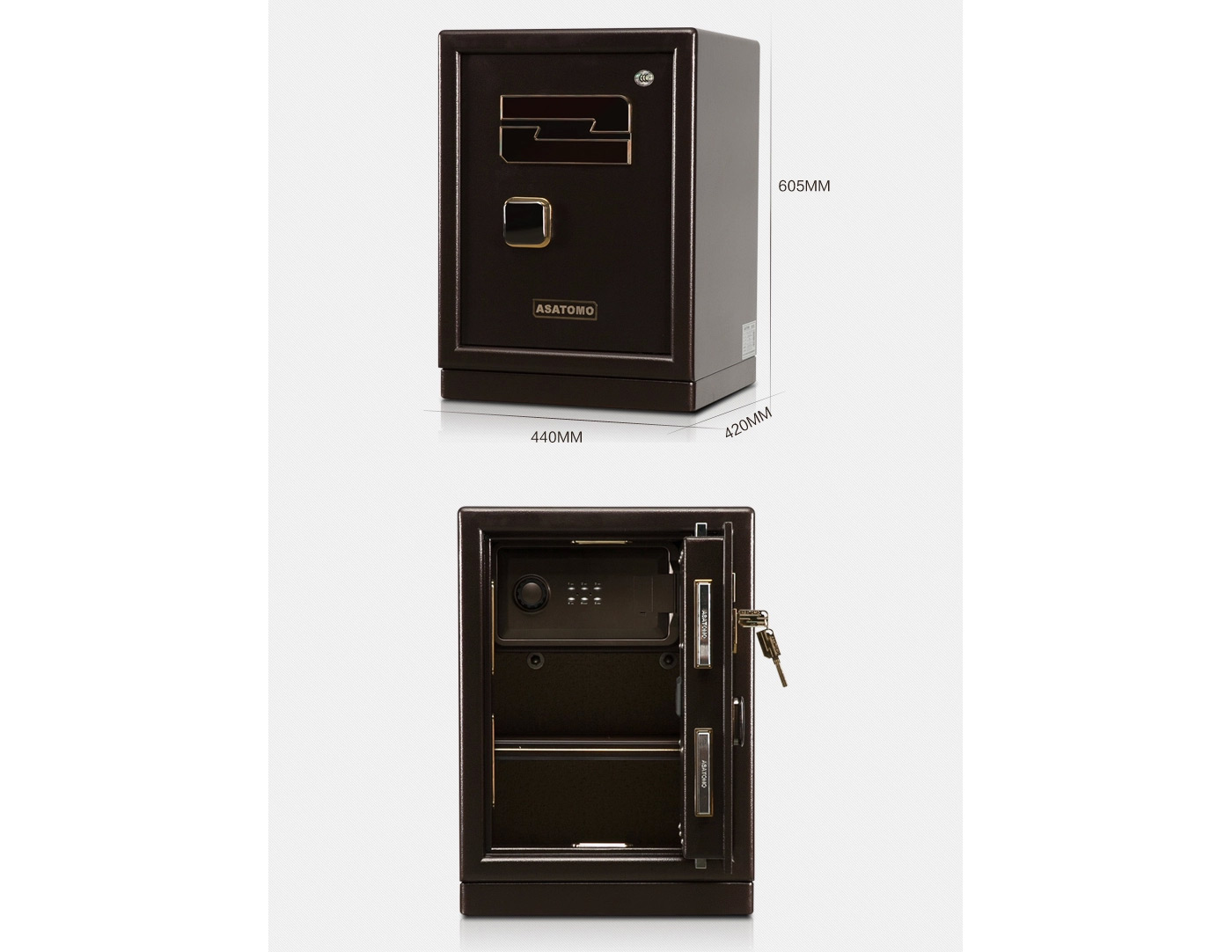 永發旗下朝友CE50經典指紋3C保險柜尺寸說明:605高*440寬*420深mm(含底座) 重量:98kg
