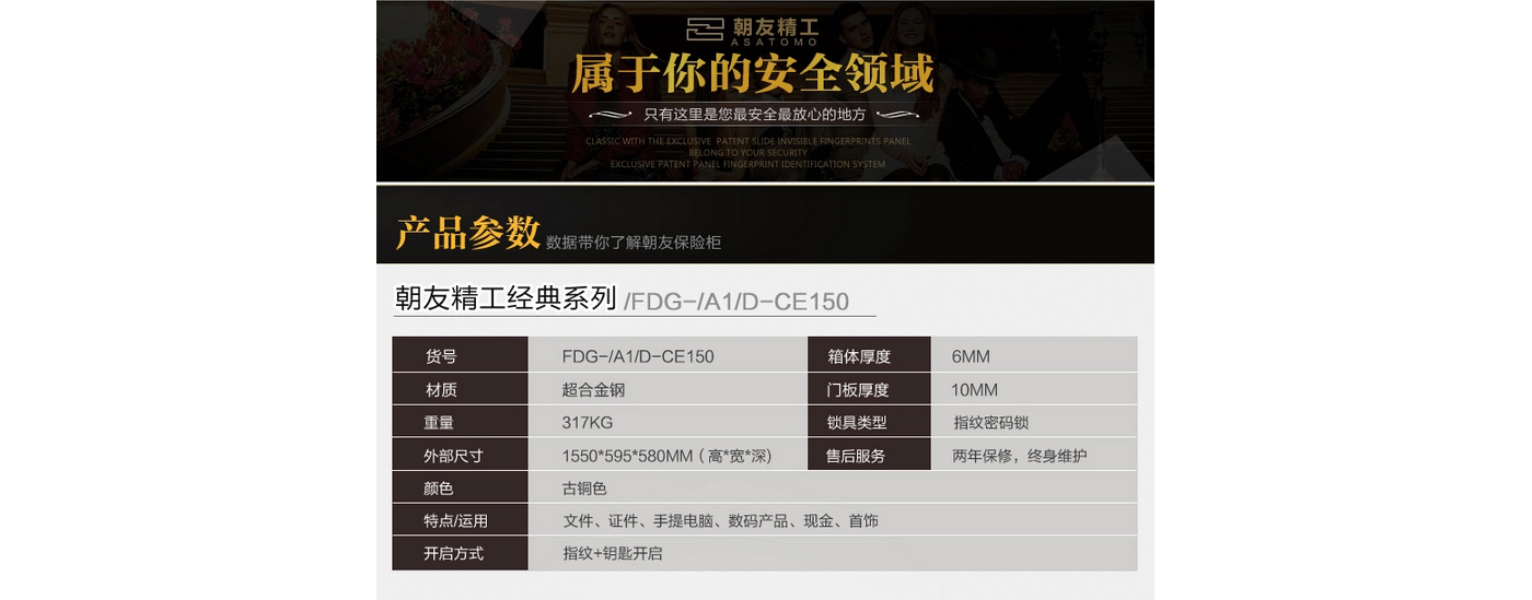永發旗下朝友CE150經典指紋3C保險柜尺寸說明:1550高*595寬*580深mm(含底座) 重量:317kg
