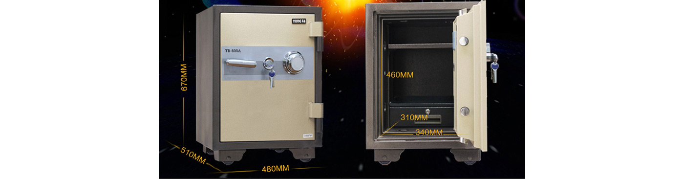 永發機械防火柜YB-600A尺寸說明:670高*480寬*510深mm(含底座) 重量:100kg