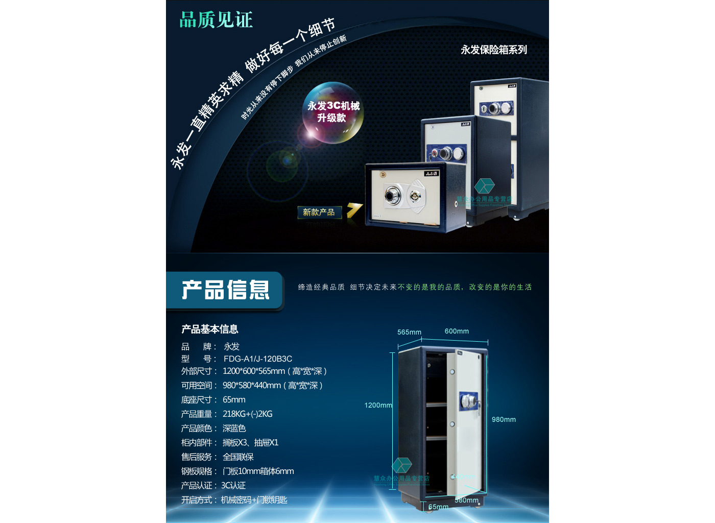 永發(fā)經(jīng)典機(jī)械系列3C認(rèn)證保險(xiǎn)箱J-120B3C尺寸說(shuō)明:1270高*600寬*565深mm(含底座) 重量:215kg