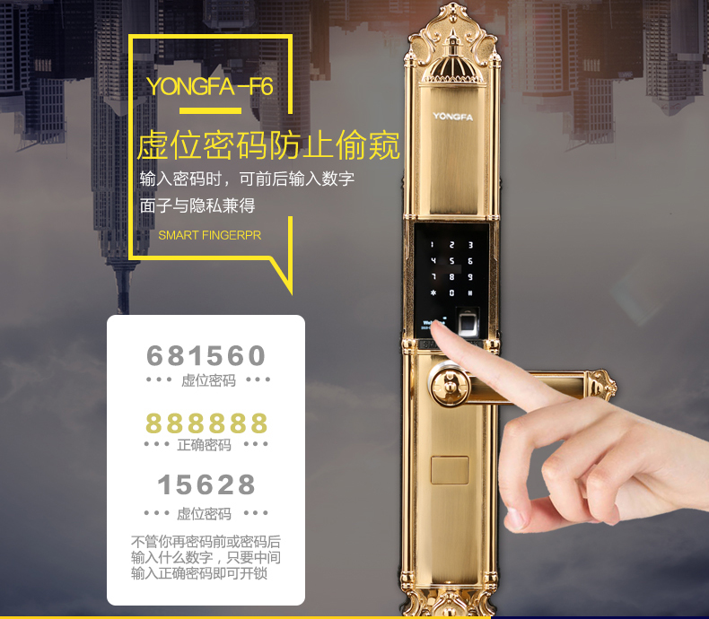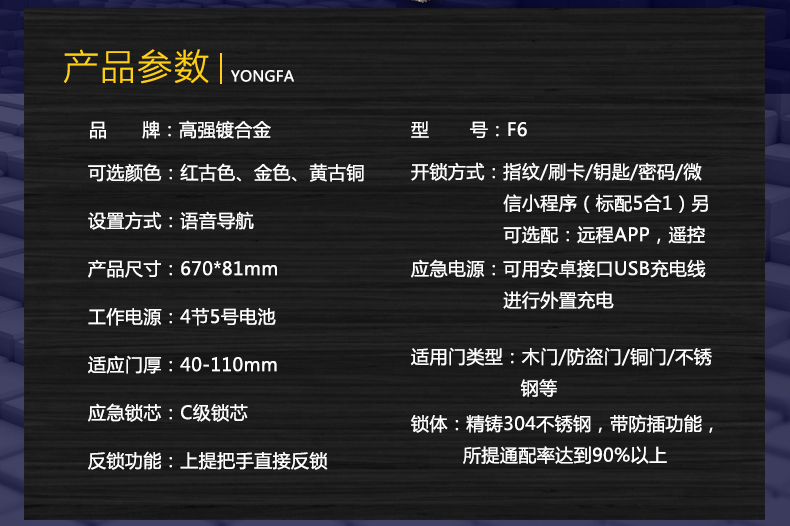 永發(YONGFA) 智能防盜門指紋鎖F6尺寸說明: